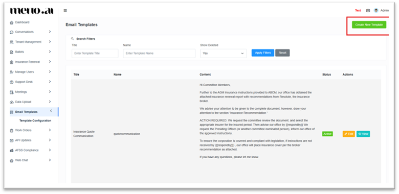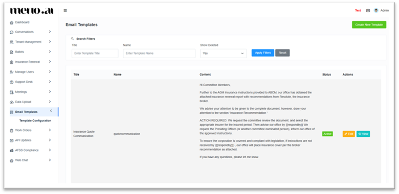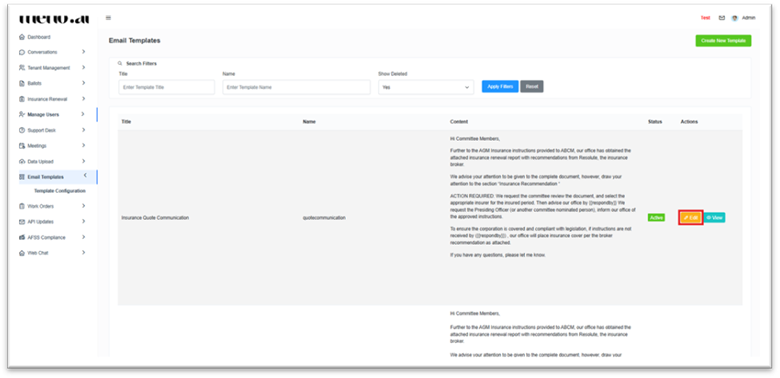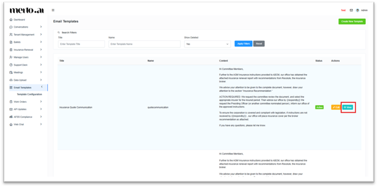 Note: Deleted templates can still be viewed using the “Show Deleted” filter.